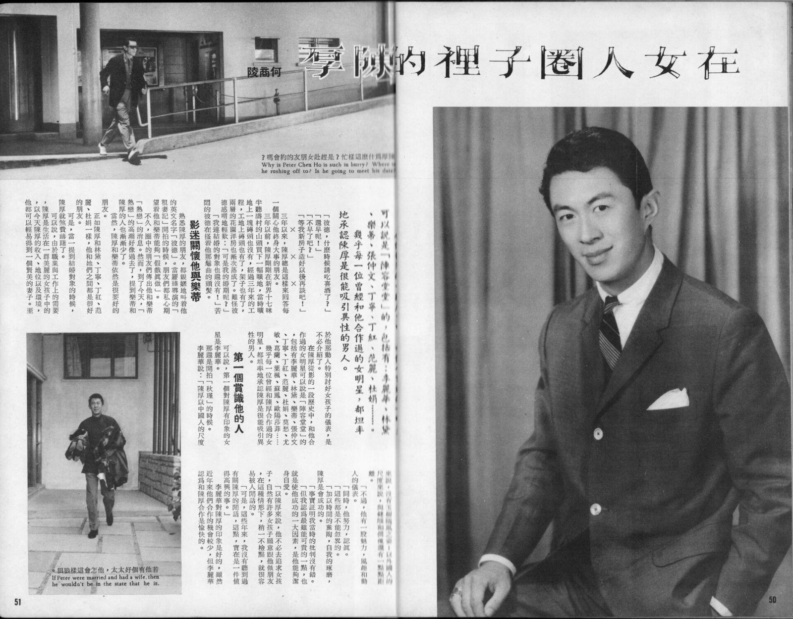 Handsome Peter Chen Ho is the ladies' man in the movie colony of Hongkong.