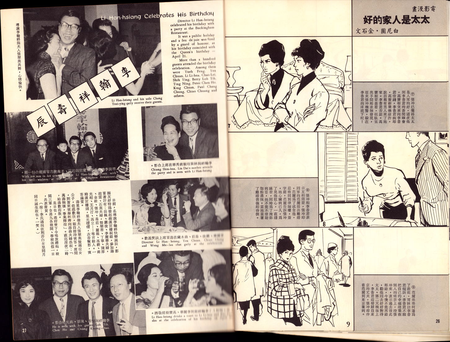 日前,名導演李翰祥快樂誕辰,影圈友好特爲發起在漢宮樓祝嘏,參加壽宴者計有:岳楓、嚴俊、李麗華夫婦,趙雷、石英夫婦,暨樂蒂、丁寧、陳厚、金銓、張冲、喬莊、羅維、馮毅、蔣光超、王月汀、高立……等百餘人。一時漢宮樓頭,星光熠熠,衣香鬢影,賓客滿堂。