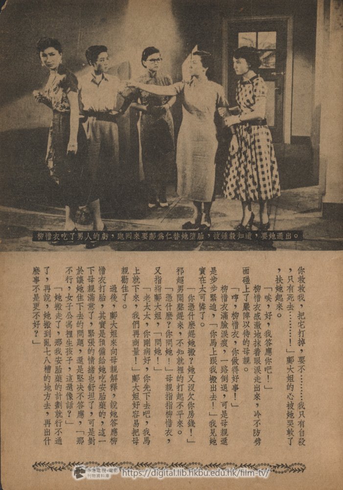 我見母親的臉變得鐵青,我也愕然失色了。柳惜衣撲倒在鄺大姐的腳下,涕淚滿面,她說她肚子一大準會失業的,而且那人是已經有了太太,不可能跟她結婚的了,「鄺大姐,你救救我,把它打掉,要不………我只有自殺,只有死去………!」鄺大姐的心被她哭軟了,「扶她起來。」