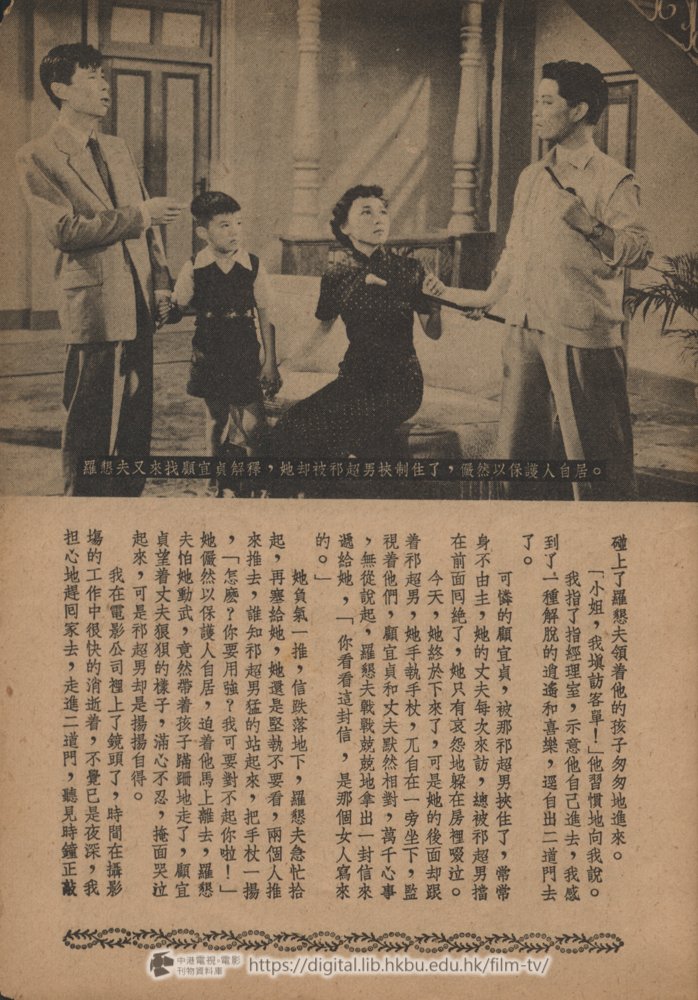她負氣一推,信跌落地下,羅懋夫急忙拾起,再塞給她,她還是堅執不要看,兩個人推來推去,誰知祁超男猛的站起來,把手杖一揚,「怎麼?你要用強?我可要對不起你啦!」她儼然以保護人自居,逼着他馬上離去,顧宜貞怕她動武,竟然帶着孩子蹣跚地走了,羅懋夫望着丈夫狼狽的樣子,滿心不忍,掩面哭泣起來,可是祁超男卻是揚揚自得。