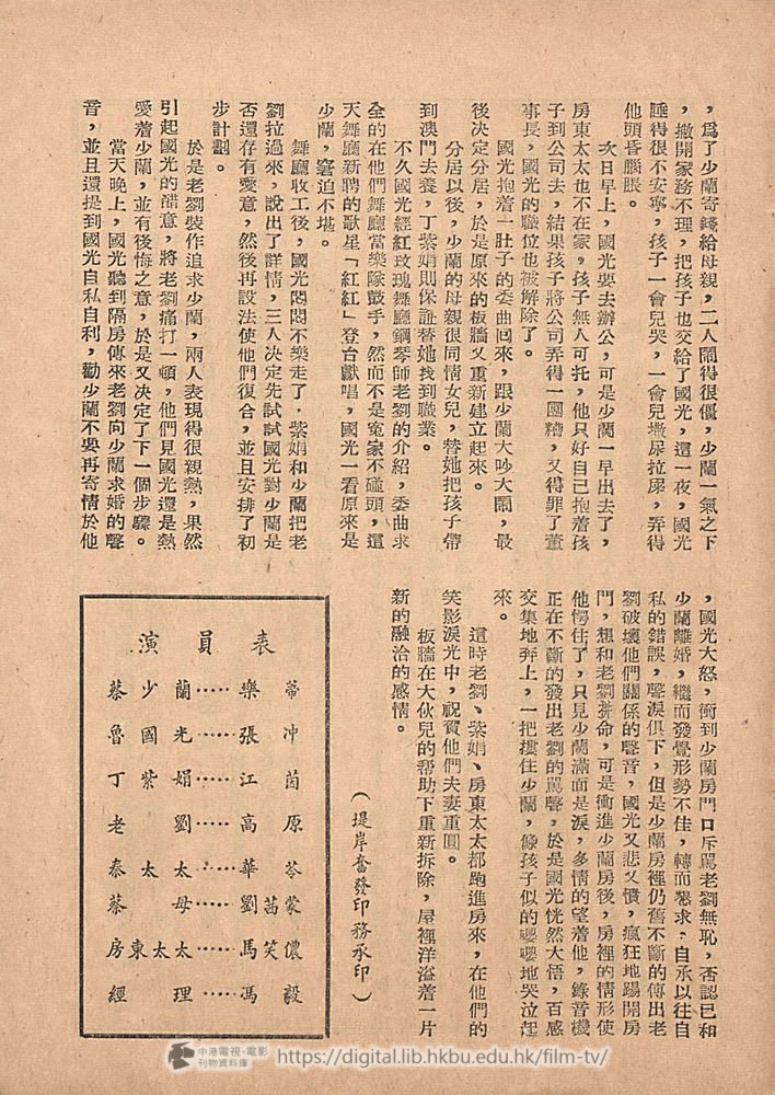 「魚水重歡」的故事,差不多每一個觀衆,都會親眼在生活中看到;它沒有傳奇性;沒有編劇人的幻想虛構,完完全全是一幅現實小市民的哀樂寫照圖。