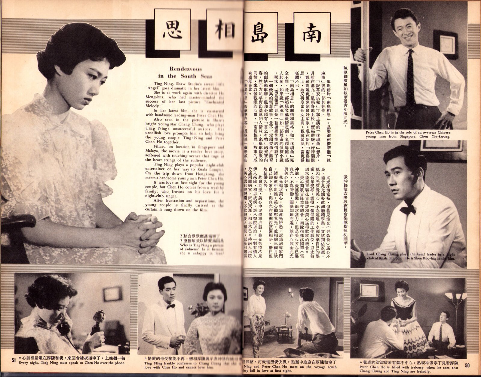 Fresh from his triumph at the Sixth Asian Film Festival, director Li Han-hsiang had for the past few months been busy at work to turn out another Mandarin motion picture great. He plunged right into work on the movie "Enchanting Shadow" right after his return.