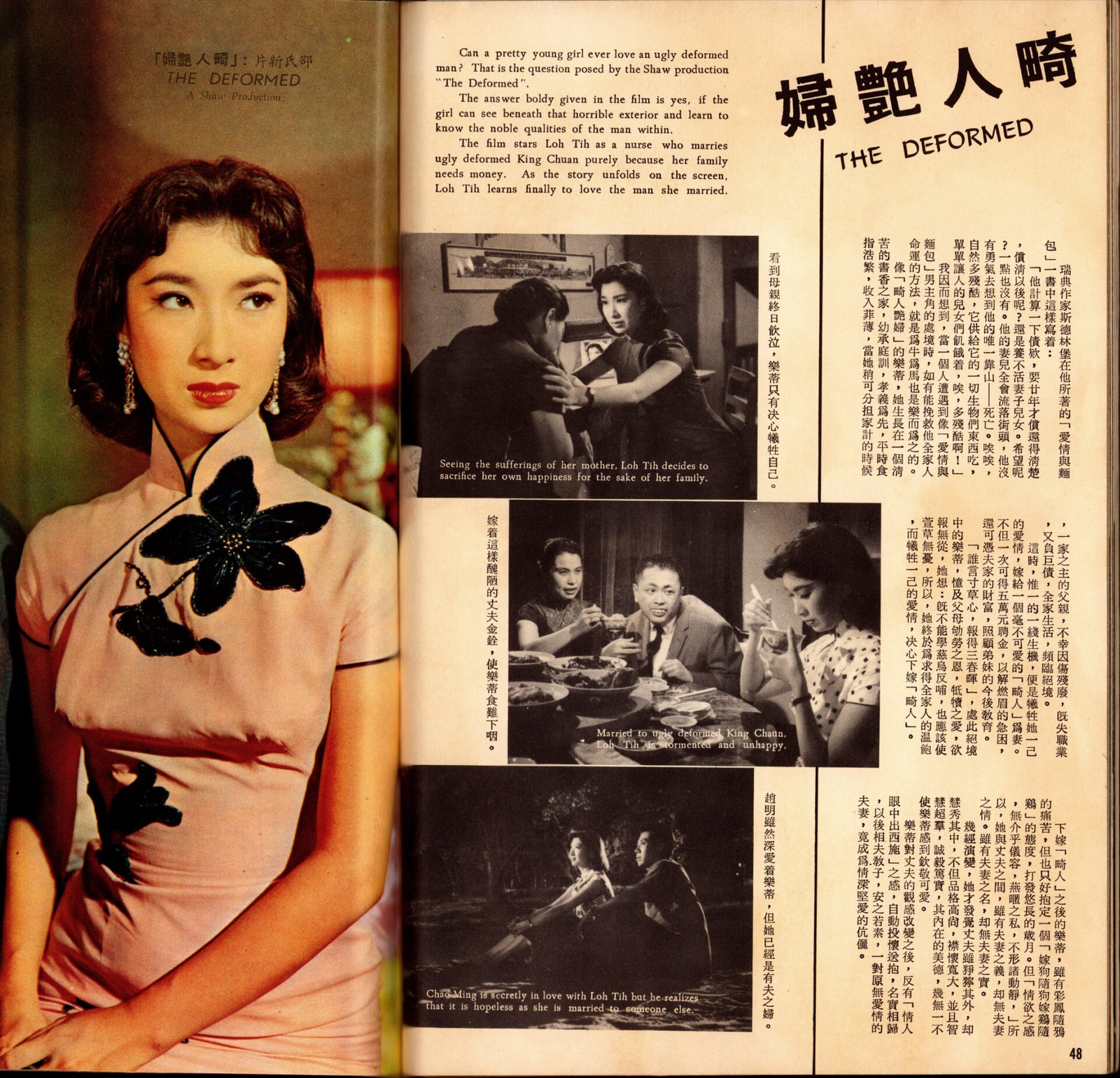 The film stars Loh Tih as a nurse who marries ugly deformed King Chuan purely because her family needs money. As the story unfolds on the screen, Loh Tih learns finally to love the man she married.