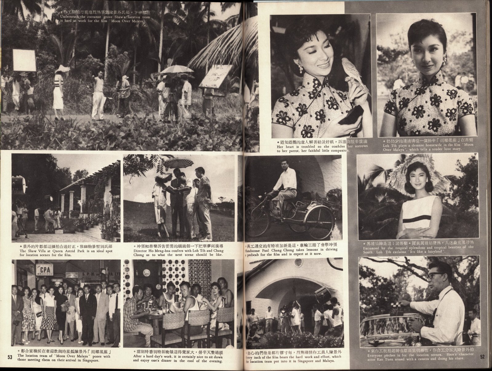 对于张冲来说,星馬也是他的舊遊之地,兩年前他曾到過星馬拍攝「星島芳踪」的外景,當時他的足跡還深入到山區土人部落。這次他重臨星馬,不但担任「蕉風椰雨」的男主角,並為另一部邵氏影片「南島相思」拍外景。「南島相思」也由何夢華導演,由丁寧、陳厚、張沖攜手主演。