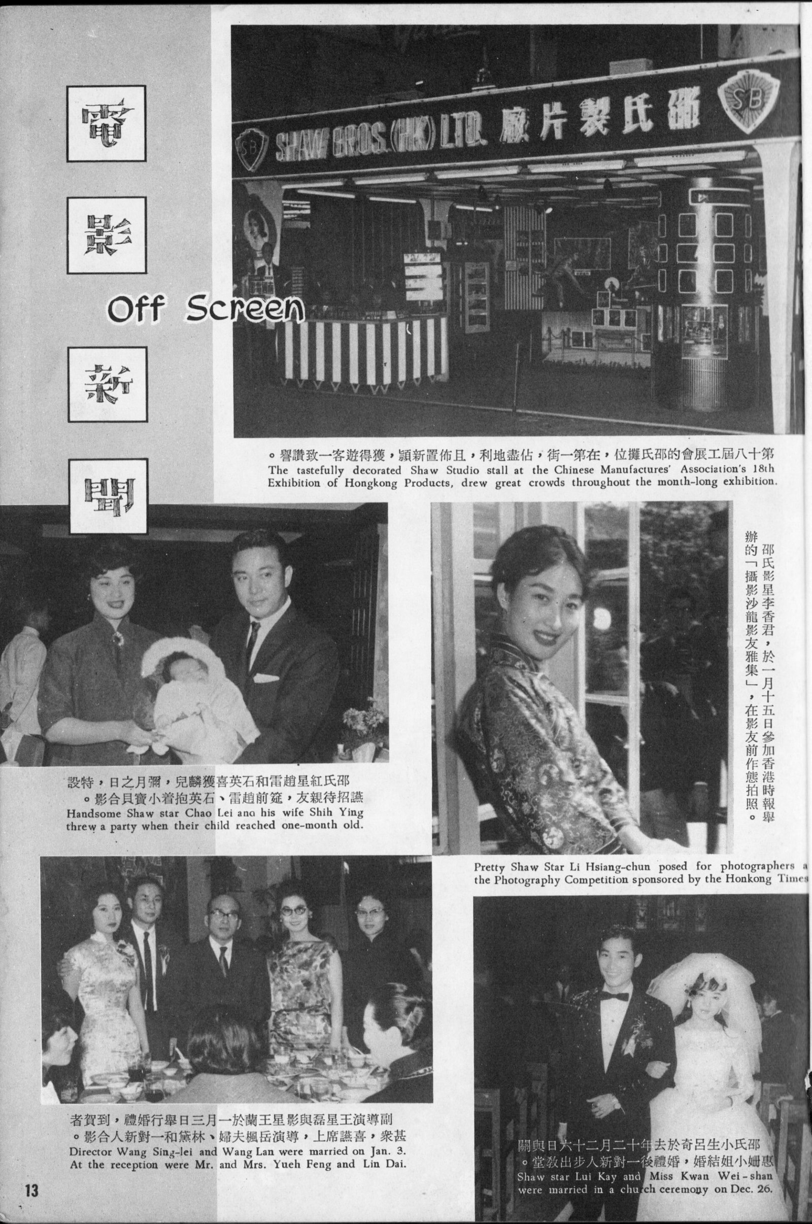 Among those present at the New Year's Eve party were Lin Dai, Betty Loh Tih, Chang Chung-wen, Fanny Fan, Pearl Au Kar-wai, Tong Dan, Lee Man, Lily Mo Chau, Kao Pao-shu, Peter Chen Ho, Chao Lei, Paul Chang Chung, King Chuan, Chiao Chuang, Mak Kay, Loong Kong, Cheung Ying-choy, Ko Leung, Lui Kay.