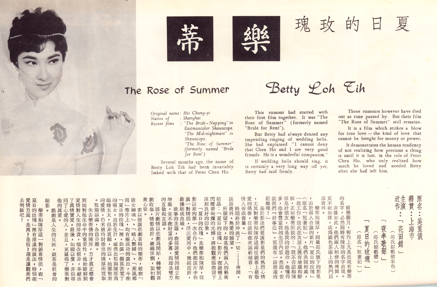 Lovely Betty Loh Tih is deeply in love with Peter Chen Ho and she thinks of him all the time.
