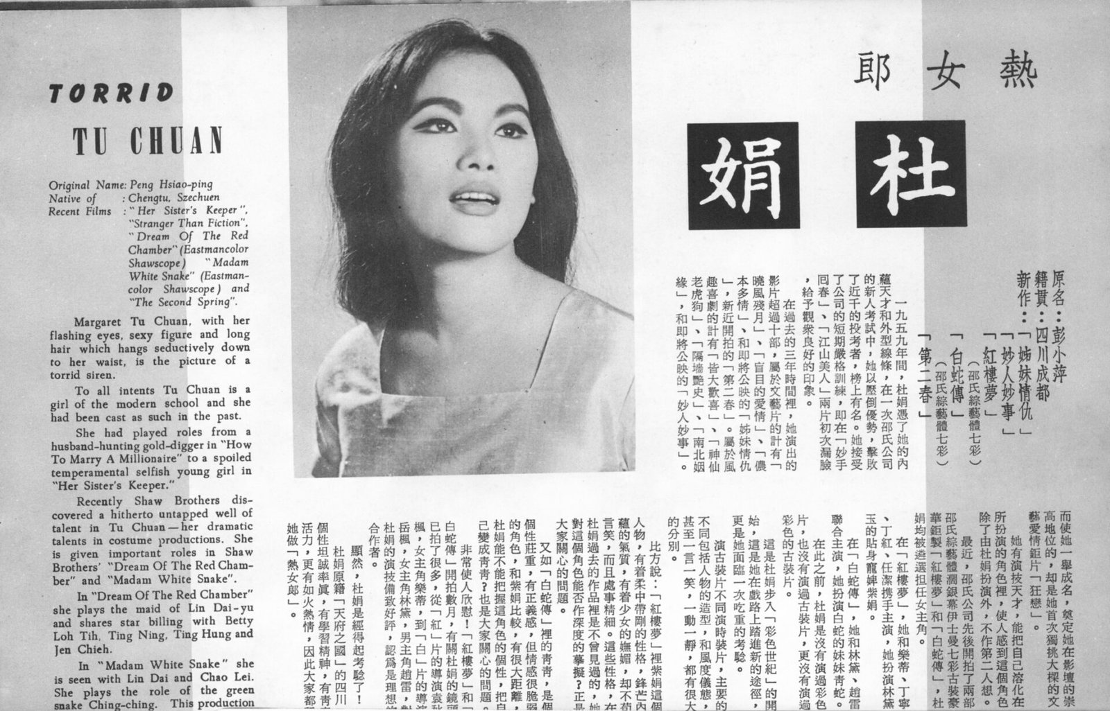 Betty Loh Tih plays the role of Lin Dai-yu in Shaw Brothers’ Eastmancolor production of “Dream Of The Red Chamber.”