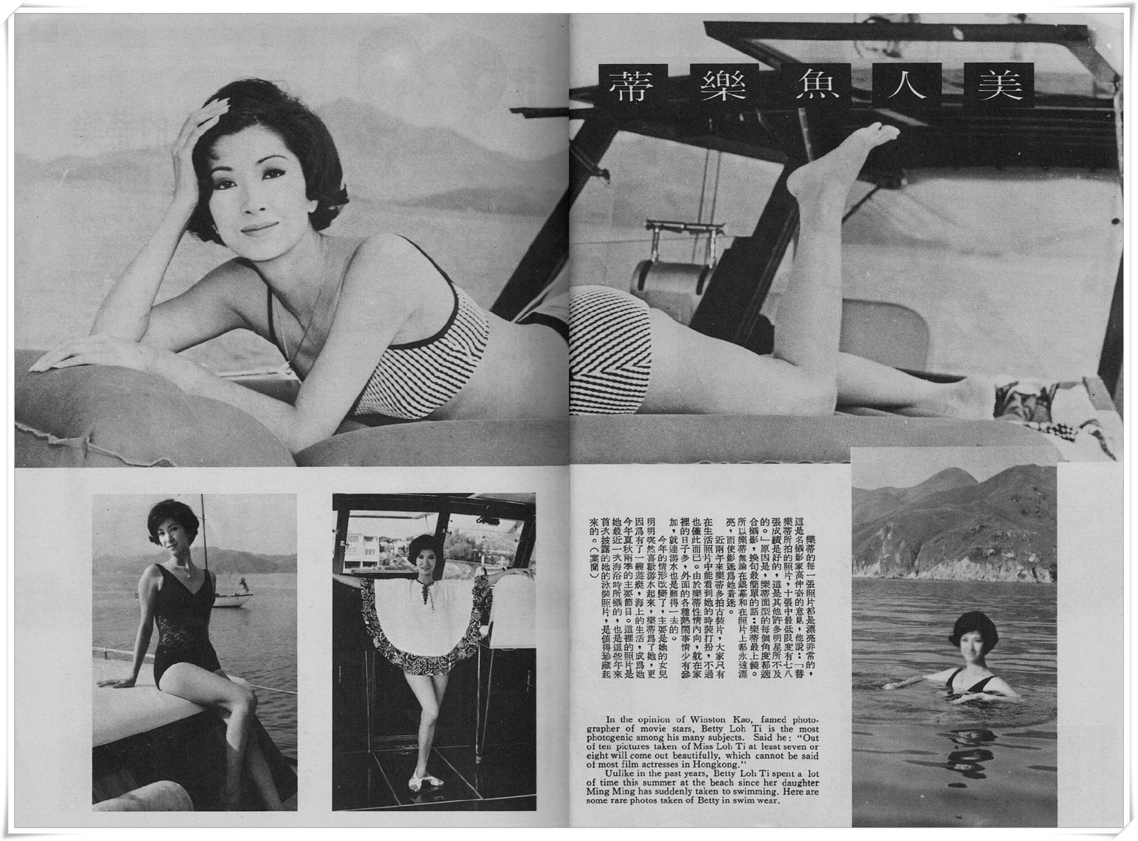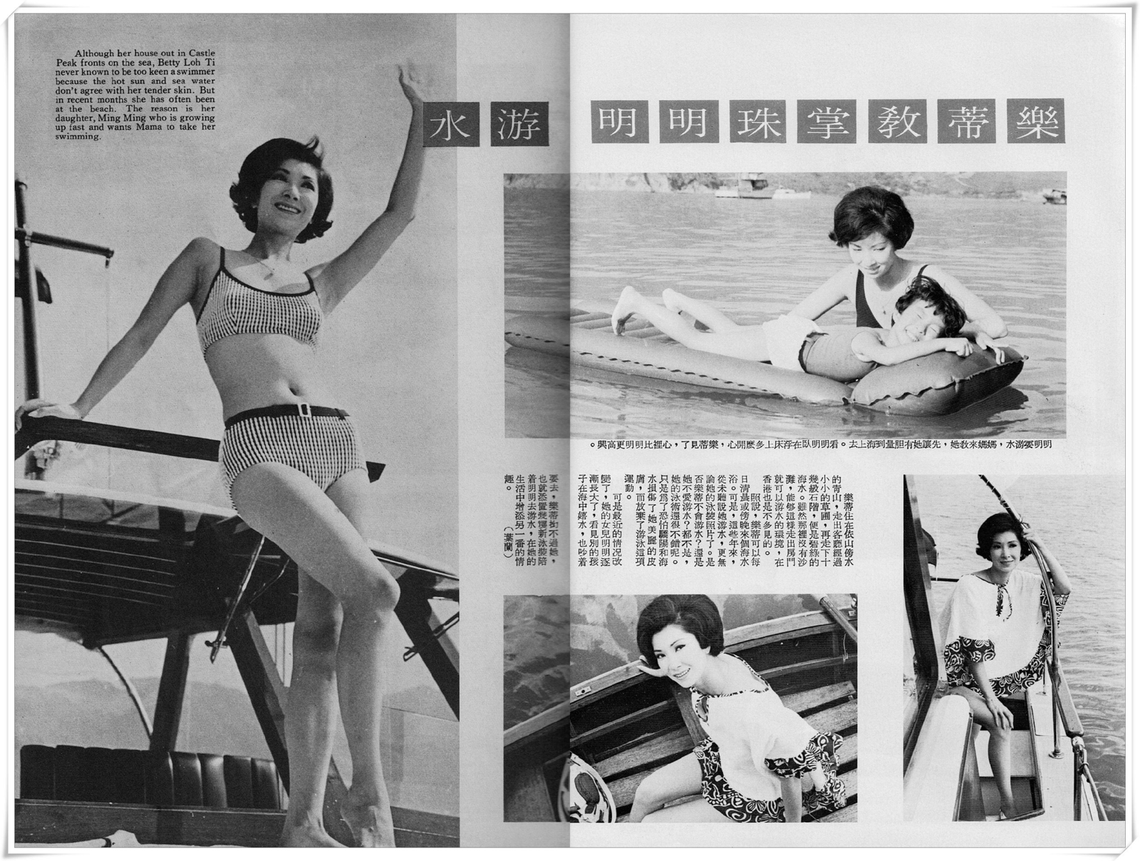 Although her house out in Castle Peak fronts on the sea, Betty Loh Ti never known to be too keen a swimmer because the hot sun and sea water don’t agree with her tender skin. But in recent months she has often been at the beach. The reason is her daughter, Ming Ming who is growing up fast and wants Mama to take her swimming.
