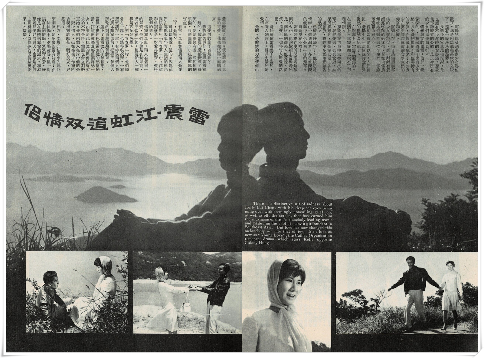 There is a distinctive air of sadness about Kelly Lai Chen, with his deep-set eyes brimming over with seemingly unavailing grief, on, as well as off, the screen, that has earned him the nickname of the “melancholy leading man” and made him the idol of many a girl student in Southeast Asia. But love has now changed this melancholy air into that of joy. It’s a love as new as “Young Love”, the Cathay Organisation romance drama which stars Kelly opposite Chiang Hung.