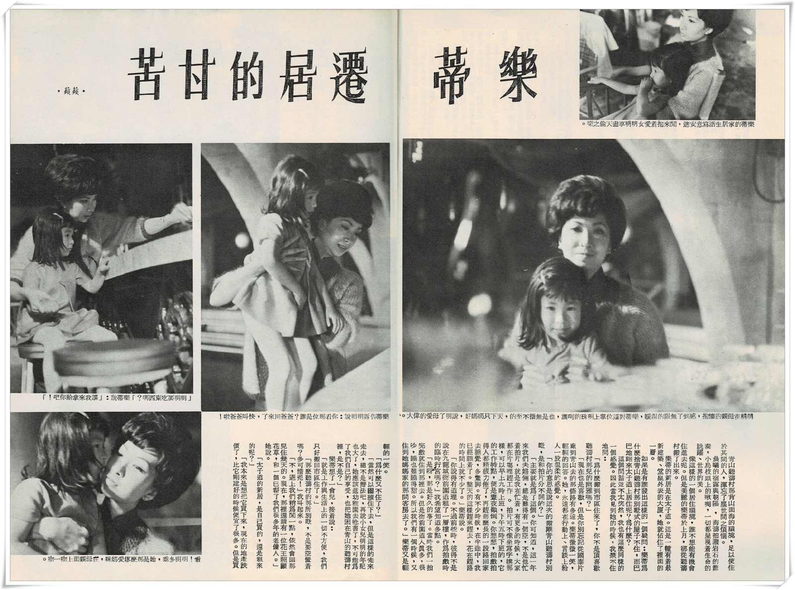 —「主要就是為了這個。你可知道,這一年來我們夫婦倆,總是難得有一個空,不是忙着拍片,就是我在忙着,有更多的時候,大家都在片場裡趕工作。拍片可不像坐寫字樓那樣,可以早上九時上班,下午五時下班的,它的工作特點,便是晝夜顛倒。你想想,拍戲拍得人都精疲力倦了,再趕那麼長的一段路回家去睡覺,多驚腳。有不少時候,在半途中,我家已經睡着了。整天的這樣趕來趕去,花在趕路的時間上就不少了。」樂蒂說。