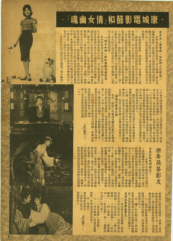 目前,國語片的最高目標是把製作水準提高和開拓世界市場,故此,邵氏公司這次推出這部片參加康城影展,也就是開拓世界市場的第一步。今後,邵氏公司基於這最高目標之下,除了製作更好的影片,介紹給影友們看之外,更希望能介紹到世界各地的電影觀眾們欣賞。你們問我會否到康城去這問題,我寫這封信回覆你們的時候,還未決定,但如時間來得及的話,我希望能到那裡見識一下。