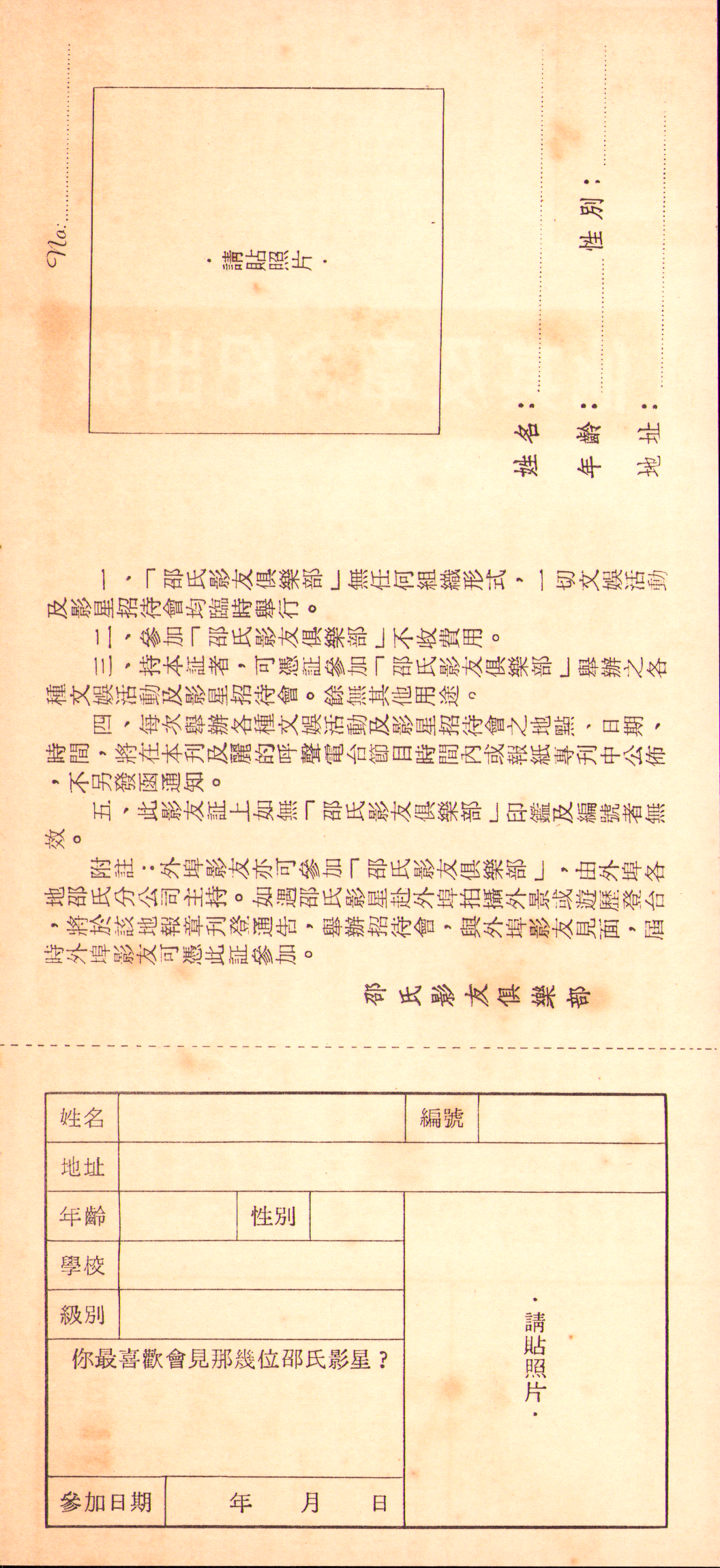一、南國畫報的「讀友証」是可以用來索取每一位邵氏影星的照片的。