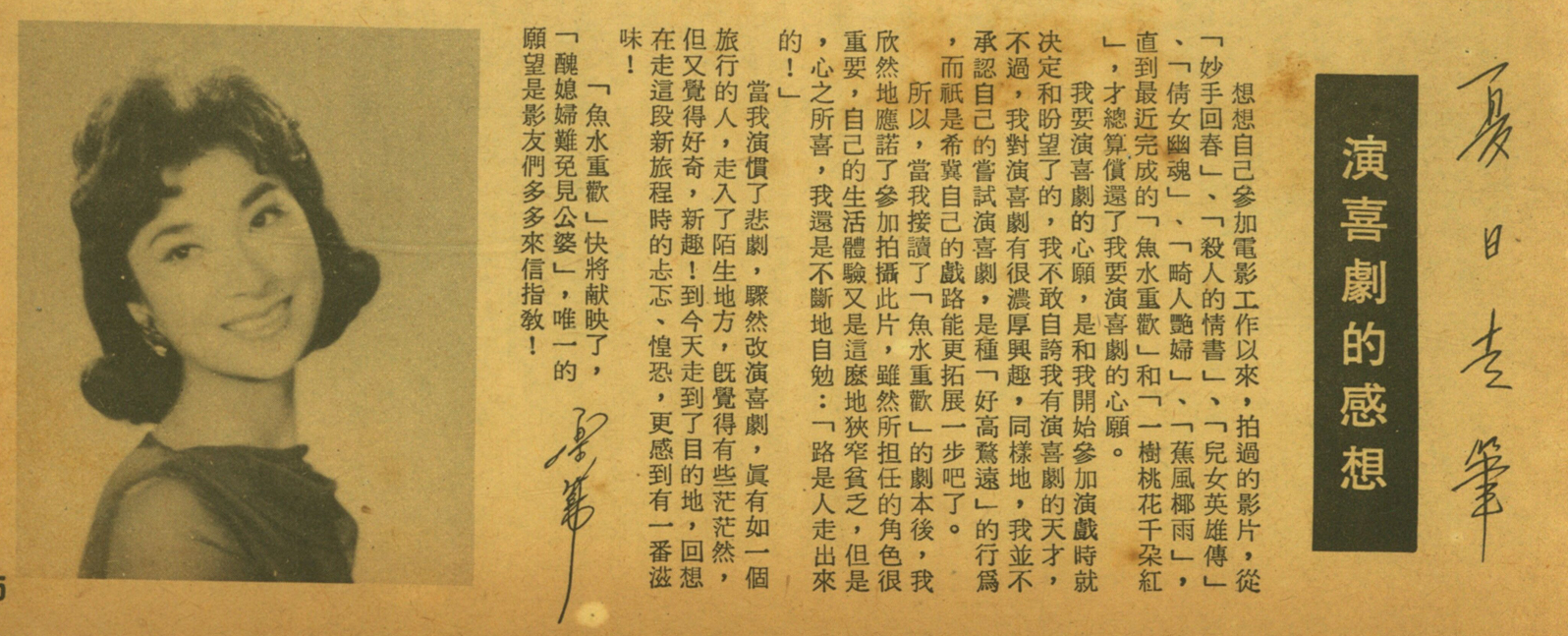 那末,樂蒂是在那一部新片裡做歌女呢?那就是在「魚水重歡」片中,在這部片裡,影友們便又可欣賞到她的歌喉了。