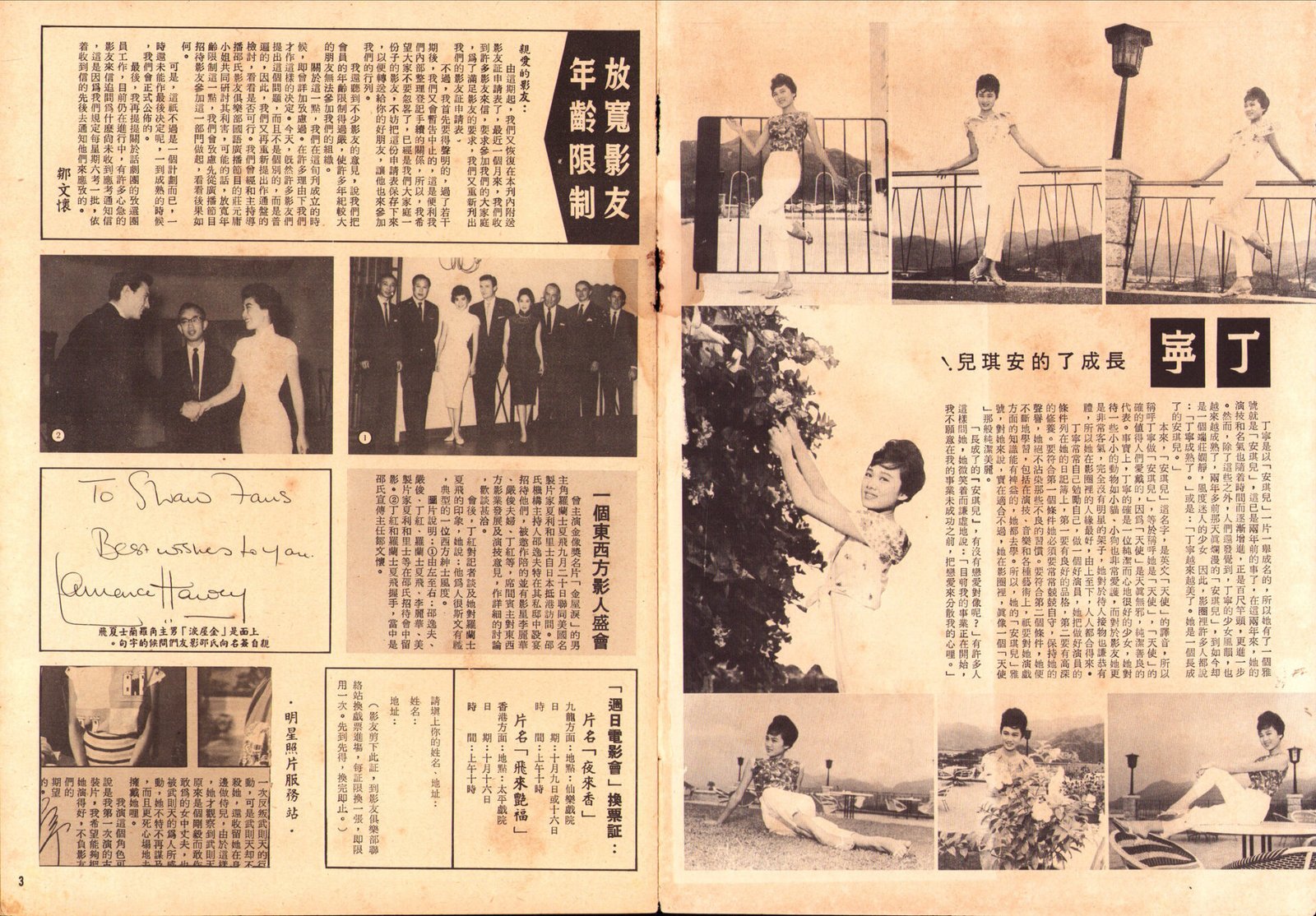 三、「租妻記」拍完後,公司方面現正在替我安排另一新片中,片名及內容,今後我將在旬刊上再告訴你們。
