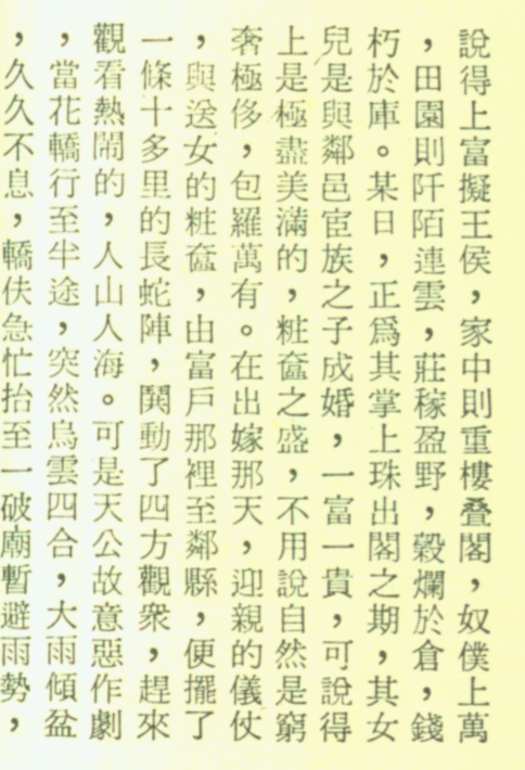 至於「鎖麟囊」的故事內容,也是相當動人的。據說:在以前某地方有一大戶人家,可說得上富擬王侯,家中則重樓疊閣,奴僕上萬,田園則阡陌連雲,莊稼盈野,穀爛於倉,錢朽於庫。某日,正為其掌上珠出閣之期,其女兒是與鄰邑宦族之子成婚,一富一貴,可說得上是極盡美滿的,粧奩之盛,不用說自然是窮奢極侈,包羅萬有。在出嫁那天,迎親的儀仗,與送女的粧奩,由富戶那裡至鄰縣,便擺了一條十多里的長蛇陣,鬧動了四方觀眾,趕來觀看熱鬧的,人山人海。可是天公故意惡作劇,當花轎行至半途,突然烏雲四合,大雨傾盆,久久不息,轎伕急忙抬至一破廟暫避雨勢,大雨仍連續不斷的下了幾個時辰,新娘在轎內坐得悶了,便叫伴娘扶她下來散散步,那時方發覺在廊廡之下,已有一迎親小轎亦停在此處避雨,那轎破舊不堪,隱約可以見到轎內新娘荊釵布裙,除此之外,了無粧奩陪嫁,富家女見此情景,自念己則粧奩長達幾里,而那女子則一身外無長物,不禁動了憐惜之念,可是她自己身上所有,除了珍貴首飾之外,亦無其他物品,忽念及上轎之時她的母親珍重地把一錦囊交給她,叫她珍重保全,相信該錦囊必是值錢的東西無疑了,於是便毅然送給那女子。