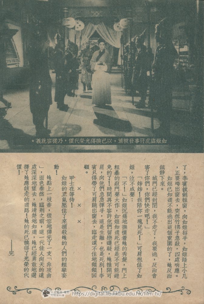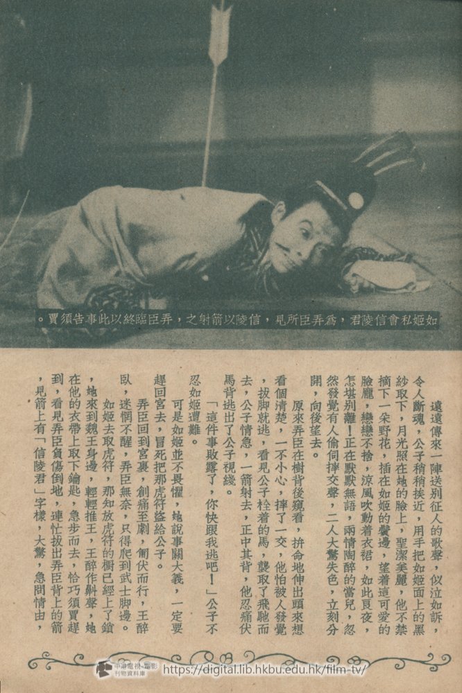 「我知道,卽使有不測,祗要死得有價值,又何足惜,但願公子此去,大功吿成,早日歸來……」如姬激昂地說。